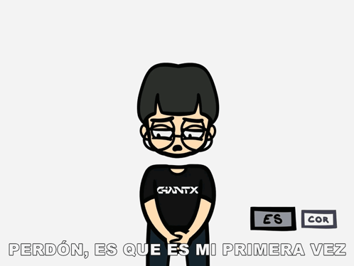 Cartoon character from GiantX says 'Sorry, it's my first time' in a feisty manner, related to esports.
