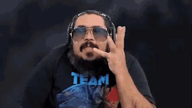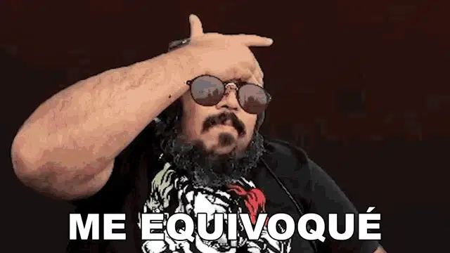 Agbin3r, a man with a beard, headphones, and sunglasses, says 'Perdón, me mamé' (Sorry, I messed up).