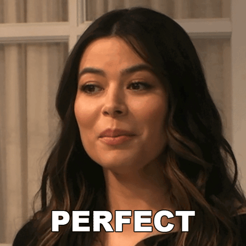 Carly Shay (Miranda Cosgrove) speaks, with the word 'PERFECT' displayed on screen.