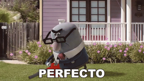 A character from The Amazing World of Gumball stands in front of a house with 'PERFECTO' on the lawn.