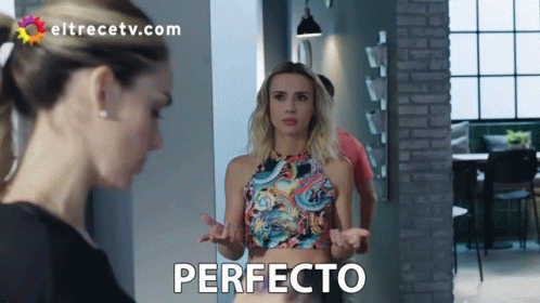 Celeste Cid and Martina Rivero in a scene from Separadas, reacting with 'Perfecto'.