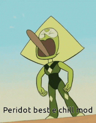 Peridot from Steven Universe with a long tongue, declared 'best e chill mod'.