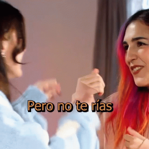 Abby and another woman try to stay serious, with captions 'Pero no te rĂas Super serias' in a playful challenge.