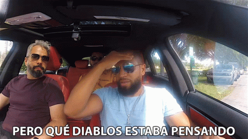 Henry Santos in a car, expressing 'What the hell was I thinking?' with a surprised and reflective gesture.