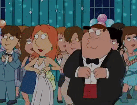 Peter Griffin and Ernie the Giant Chicken in a classic brawl at a crowded party.