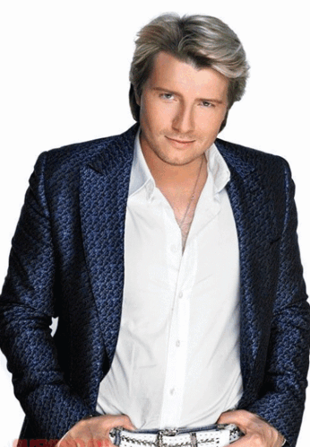 Russian singer, actor, and TV presenter Nikolai Baskov poses with singer Valeria in studio portraits.
