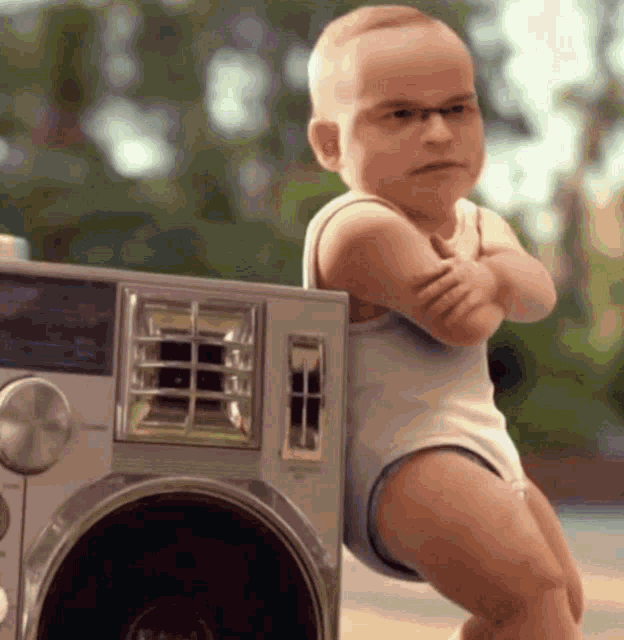 Pezet łebcz features a compilation of a baby with an adult face, possibly Artur Cygert, dancing in various scenes.