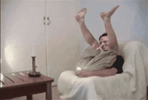 Phil Spencer, head of Xbox, sitting in an armchair with his legs humorously extended upwards, smiling.