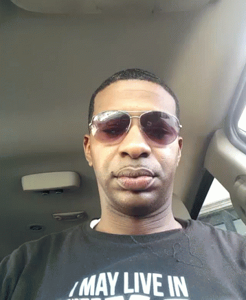 Man in 'I May Live in Texas' shirt reacts with a smile, likely to Philadelphia Eagles news.