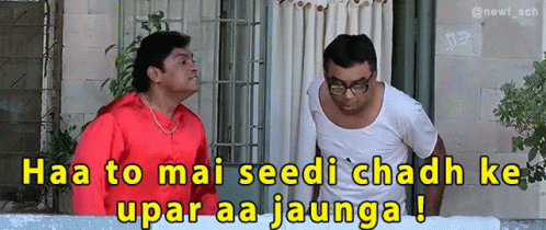 Baburao delivering a classic dialogue from Phir Hera Pheri, threatening to climb up the stairs.