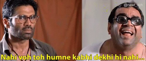 Baburao (Paresh Rawal) from Phir Hera Pheri says 'Nahi Voh Toh Humne Kabhi Dekhi Hi Nahi' to Suniel Shetty.