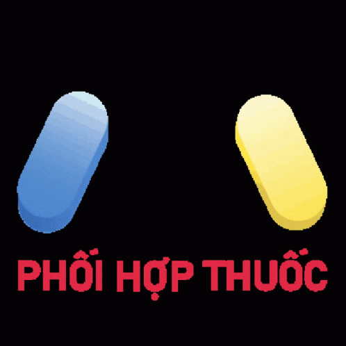A green pill with a sparkle, accompanied by the Vietnamese text 'PHỐI HỢP THUỐC' (Drug combination).