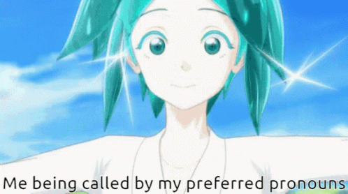 Phos from Land Of The Lustrous reacts joyfully to being called by their preferred pronouns.
