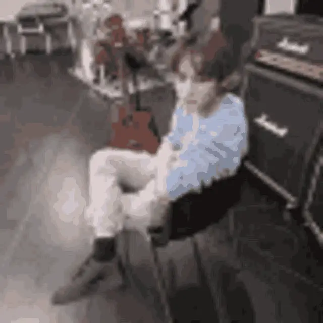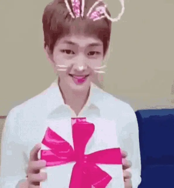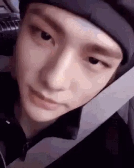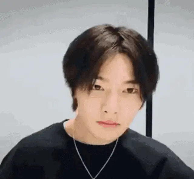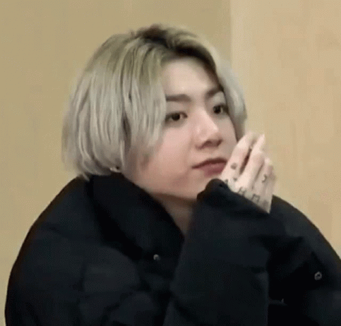 Jungkook from BTS eating and showing a surprised reaction, with blonde hair and a black jacket.
