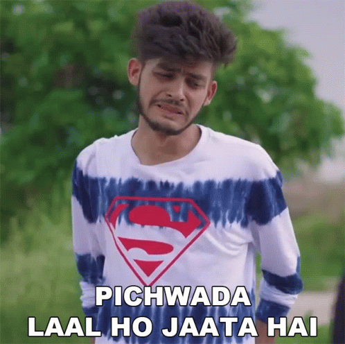 Sumit Bhyan crying with the caption 'Pichwada Laal Ho Jaata Hai' (The butt turns red), expressing pain or regret.