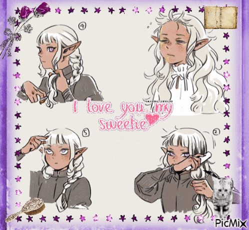 Anime-style character Thistle with white hair and elf ears, accompanied by the text 'I love you my sweetie'.