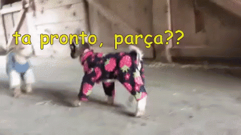 Two adorable baby goats, dressed in pajamas, interact with captions in Portuguese, one asking "Are you ready, buddy??" and the other replying "I am, brother, let's go!"