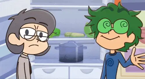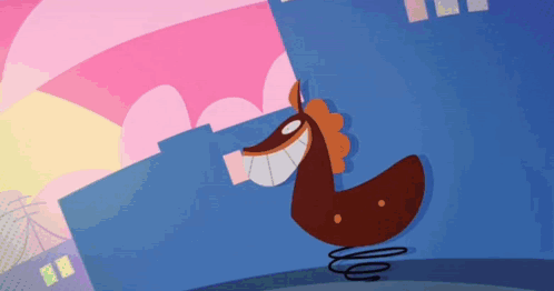 Pik rides a spring horse and wrestles Varu in a colorful cartoon setting from 13 Cards.