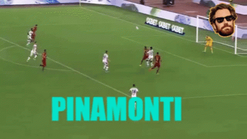 Andrea Pinamonti scores a goal for Genoa, celebrated by his teammates on the field.