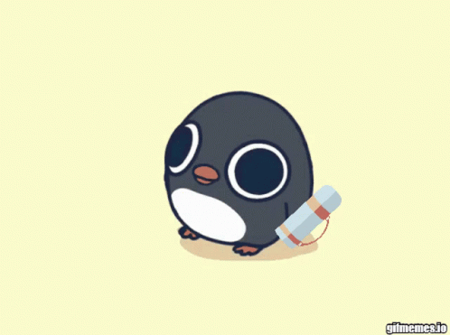 A cute cartoon penguin waddling while holding a mate gourd and a thermos, ready for a refreshing drink.