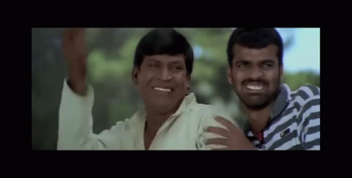 Comedian Vadivelu and Sachin share a laugh, smiling broadly in a memorable scene.