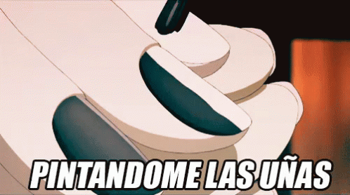 Animated hand painting nails with black and white polish, featuring 'Pintandome Las Uñas' text overlay.