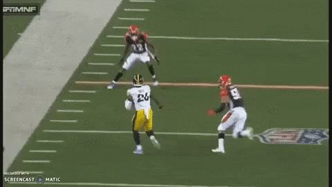 Pittsburgh Steelers' Le'Veon Bell (#26) breaks free, evading Cincinnati Bengals defenders during MNF.