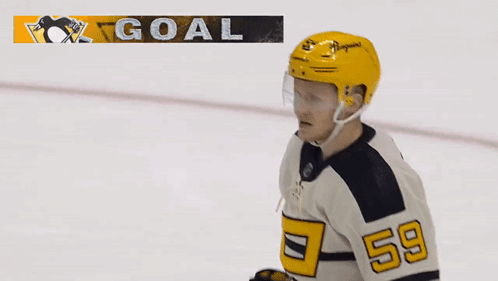 Jake Guentzel celebrates after scoring a goal for the Pittsburgh Penguins in a hockey game.