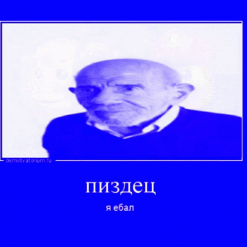 Inverted yellow and black image of a man with Russian text 'Pizdec Ya Ebal' below.