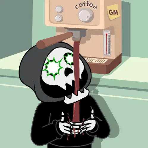 A skeleton-like figure and a dog embark on a space adventure in a rocket, part of the Pizza Ninjas universe.