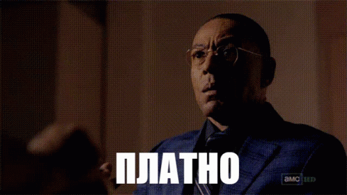 Gus Fring, a man in a suit, screams intensely in a dark room, with the word 'платно' visible on screen.