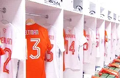Footballer Arjen Robben falls to the ground during an Eredivisie match, holding his legs in pain.