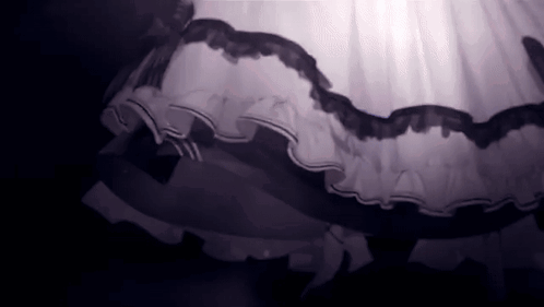 a black and white photo of a dress with ruffles and a bow on it .