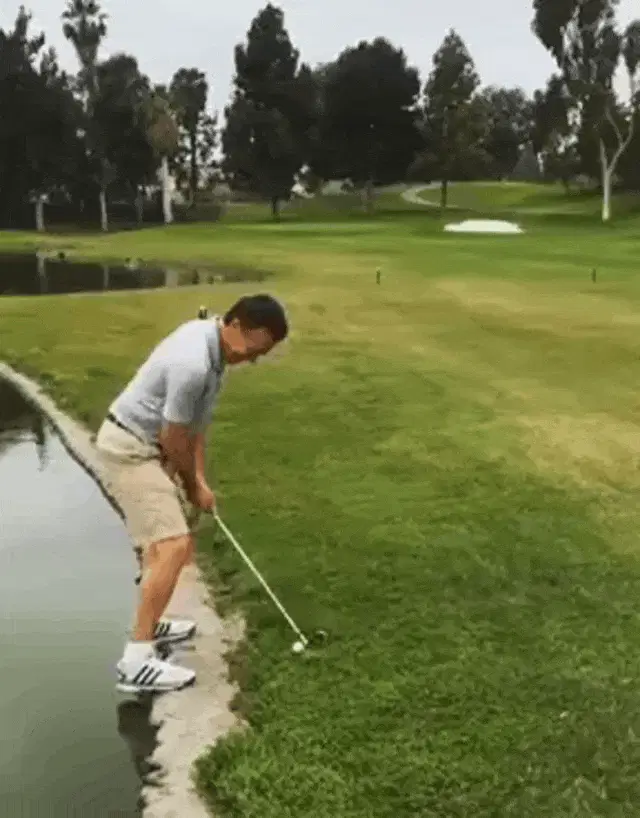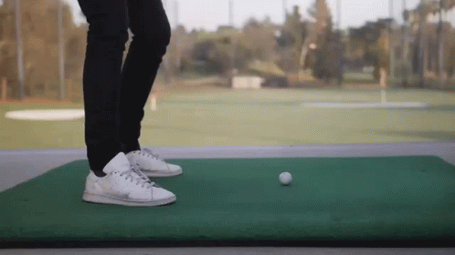 A person associated with Counter Logic Gaming practices their golf swing, hitting a golf ball at a driving range.