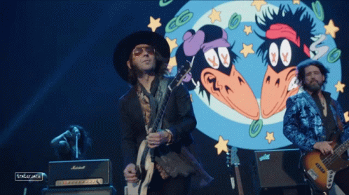 The Black Crowes perform live, with a guitarist in a hat and sunglasses playing at Stagecoach.