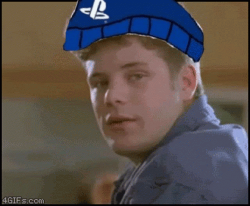 A meme featuring a PlayStation PS5 fan reacting to a list of advanced gaming features, highlighting console comparisons.