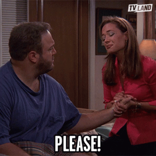 Doug Heffernan (Kevin James) makes a desperate plea to Carrie Heffernan (Leah Remini) in a scene from King of Queens.
