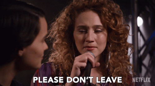 Katrina Cunningham performs 'Please Don't Leave' into a microphone, an emotional moment from Trinkets.