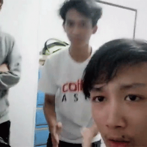 A young man in a white t-shirt makes a prayer-like gesture, possibly pleading or hoping for something.