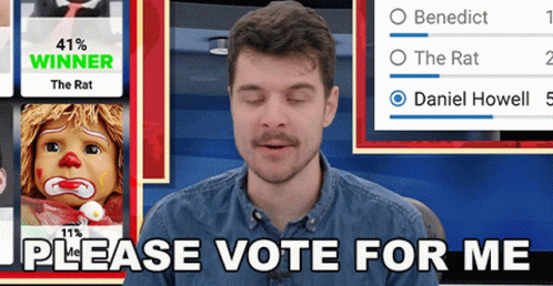 Benedict Townsend, a Youtuber, earnestly pleads for votes with 'Please Vote For Me' text on screen.