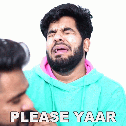 Yogesh Kathuria crying and pleading with the words 'Please Yaar' visible, showing intense emotion.
