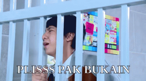 Arbani Yasiz, as his character in Roman Picisan, pleads from behind bars, saying 'Plisss Pak Bukain'.