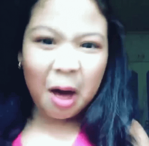 A close-up of a young girl making a funny face with her mouth open, part of the Pnz Meme.