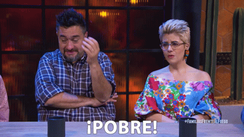 Belen Alonso and Toño De Liver react with empathy, with the text '¡POBRE!' displayed.