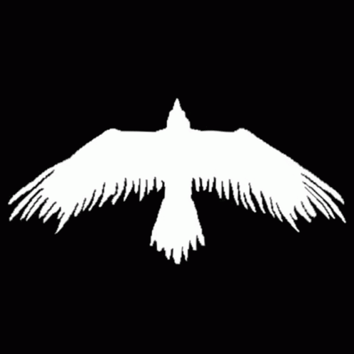 A striking white silhouette of a bird with its wings spread, set against a stark black background.