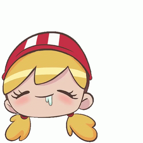 A cute cartoon girl drooling and dreaming of a Pocky stick, embodying the "Share Happiness" theme.