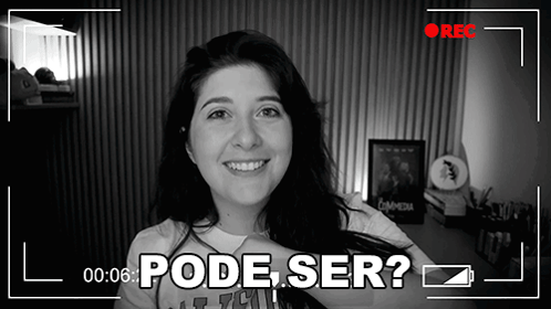 Anna Schermak smiles and asks 'Pode Ser?' in this black and white clip.
