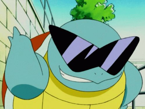 Squirtle from Pokemon, wearing sunglasses, makes a "Come At Me Bro" taunting gesture.