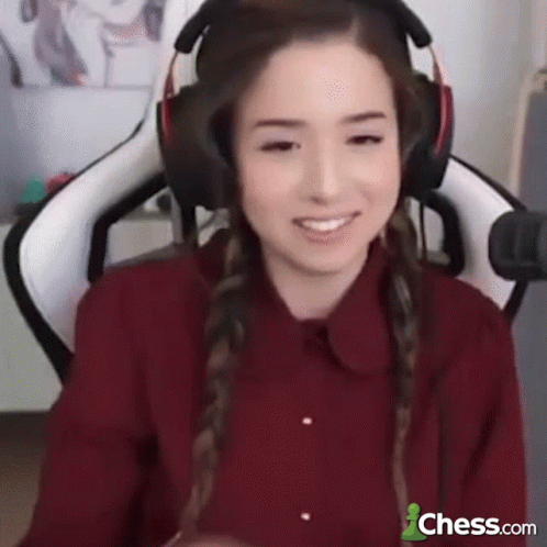 Pokimane reacts intensely during a chess game, wiping her forehead, showing relief or stress.