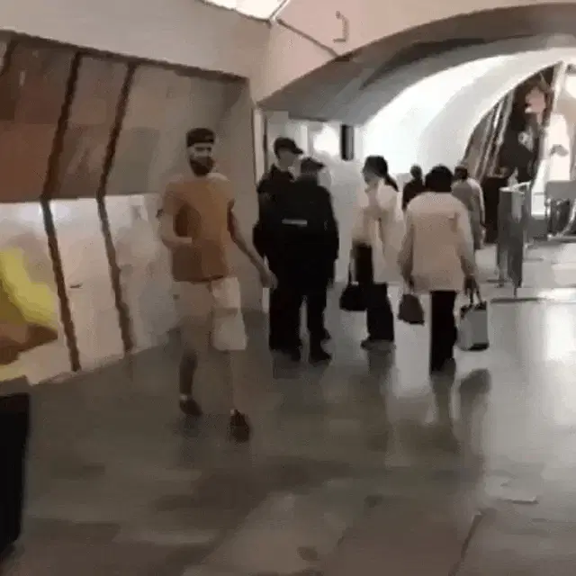 Police officers in uniform perform a choreographed dance routine on a city rooftop.